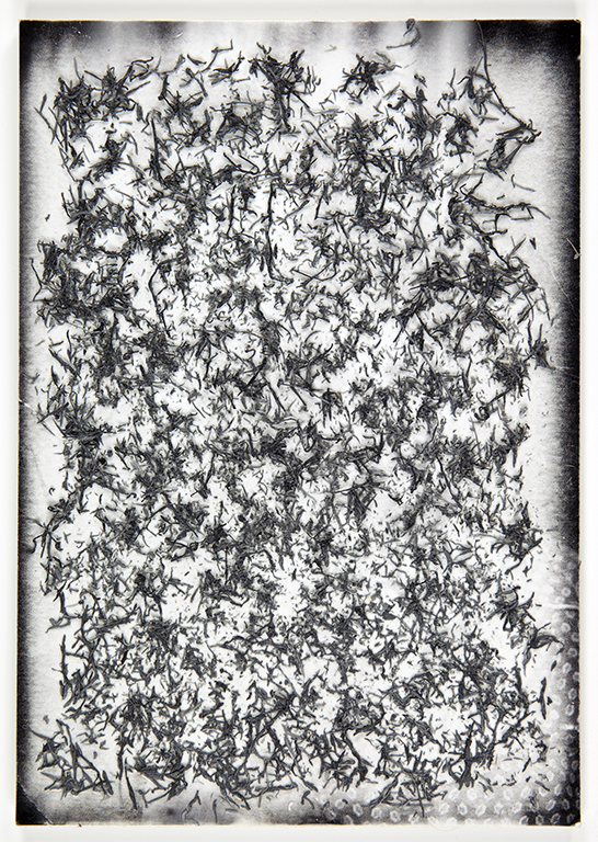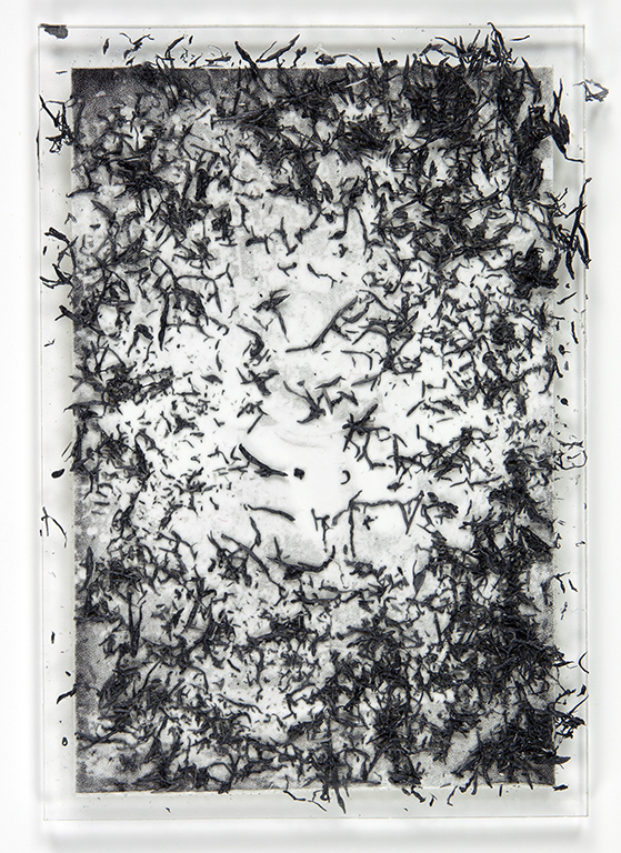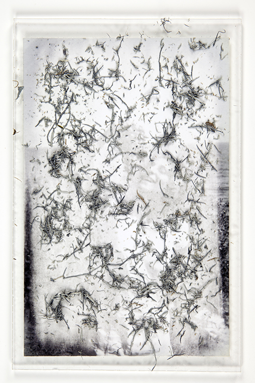 Through such work, I gained significant insight into my family silence. First of all, keeping silent is an on-going emotional and mental work; sharing is more instinctual to us. Similarly, the material has resistance. I couldn’t remove the deep blacks within the print; as much as the surface I erased retained its presence through small rubber shreds. As insufficient marks of memory fragments, they are part of the full story; consequently, I decided to place them back on the photographic surface.