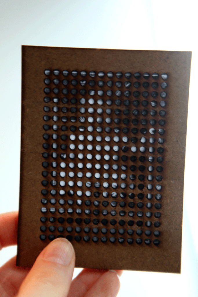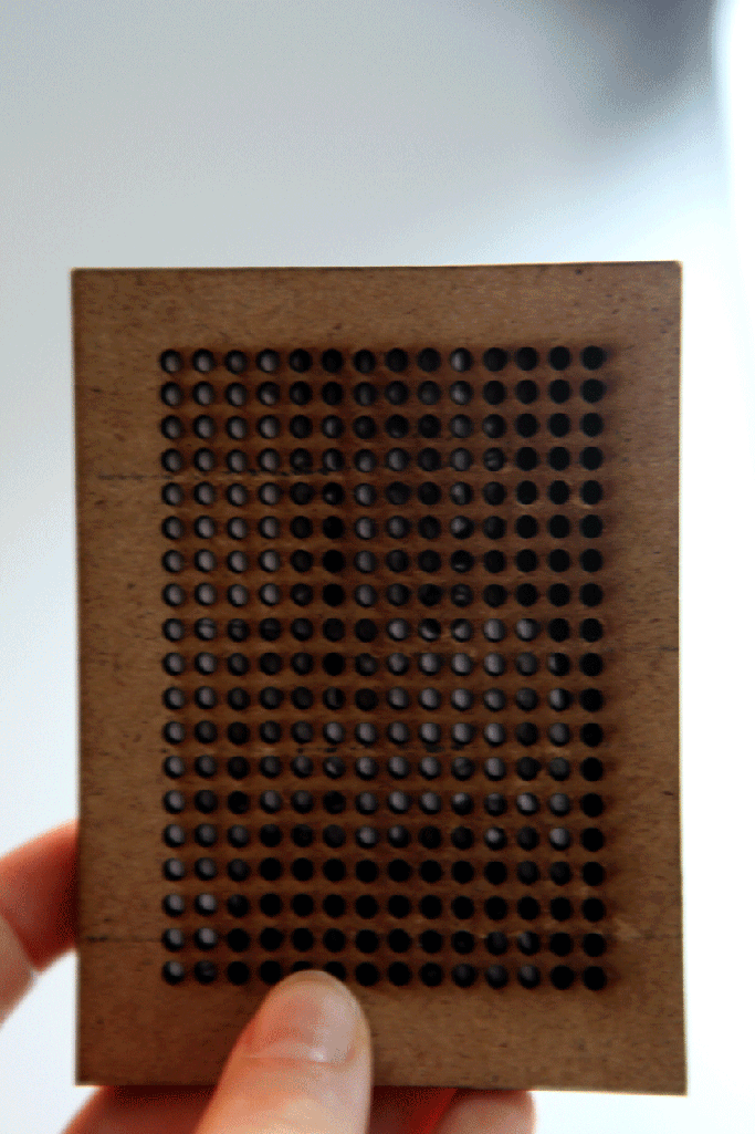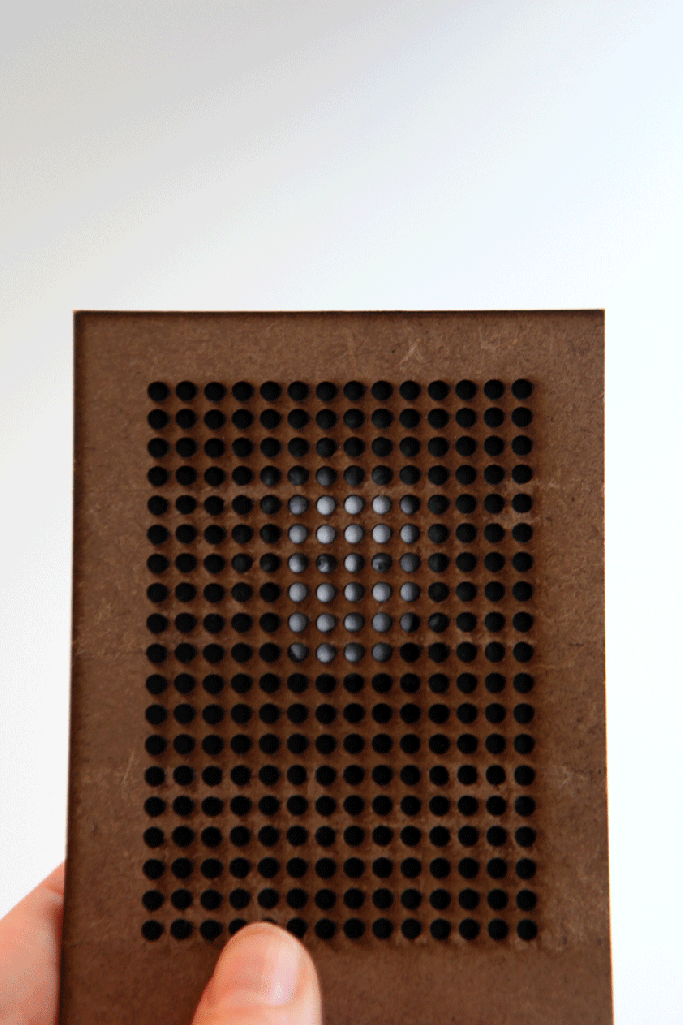 FrameWorks aim’s to demonstrate to viewers this expereince. Pocket size photographs are sandwiched between 2 or 4 milimeter thick panels. The viewers have to work and move them to be able for some details to peak through the holes. Comprehension is contantly disrupted by the panels. Similarly, how Hirsch argues, sometimes the gleaming surface of photographs shield and take our attention away from what lies underneath. For this reason I began to remove the surfaces in EraserWorks.